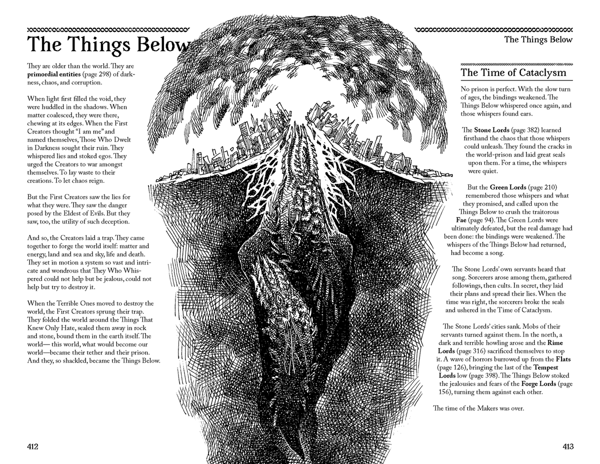 - A 600-page setting almanac covering important regions, points of interest, neighboring settlements, creatures of the wild, and eerie remnants of past civilizations.